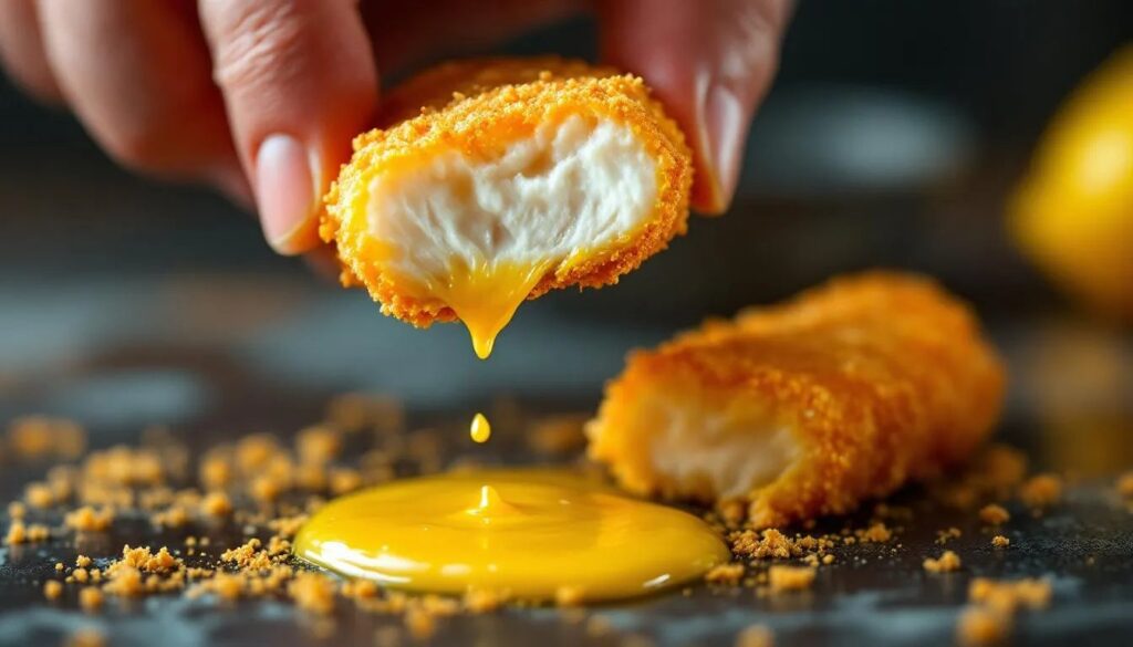 Wer selbst Hand anlegt, folgt dem klassischen Dreifachpanierverfahren: Mehl, Ei, Brösel. Erst die Fischstreifen trocken tupfen und leicht salzen. Dann im Mehl wenden – eine dünne Schicht reicht, überschüssiges Mehl abklopfen. Danach durch das verquirlte Ei ziehen: das Ei ist das Bindemittel, das Mehl und Brösel zusammenhält. Schließlich großzügig in den Semmelbröseln wälzen, dabei leicht andrücken. Den Zitronenabrieb unter die Brösel mengen, bevor paniert wird – so verteilt sich das Aroma gleichmäßig. Die panierten Streifen vor dem Braten 5 Minuten im Kühlschrank ruhen lassen, damit die Panade haftet und nicht beim ersten Kontakt mit dem Fett abreißt.